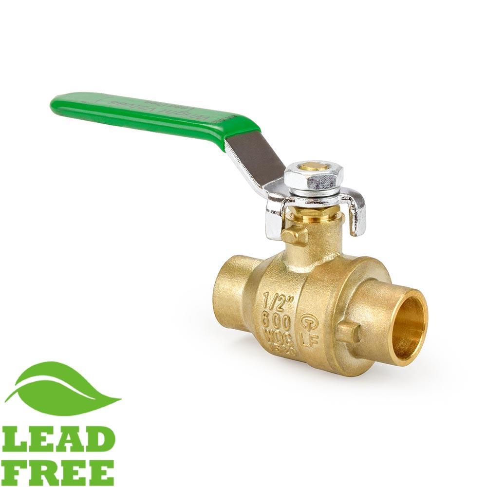 1/2” Sweat (Solder) Brass Ball Valve, Full Port (Lead-Free)