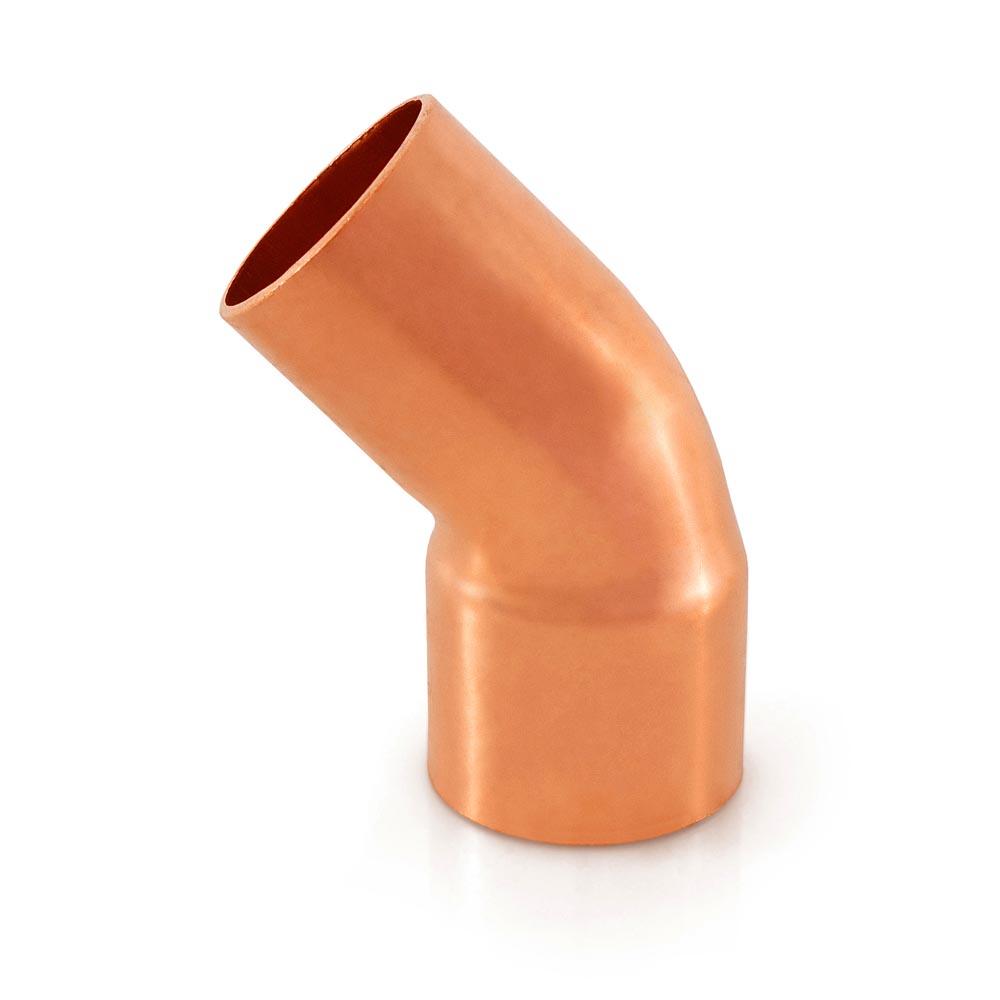 The E45-ST-50 from Everhot is a 1” Copper Street Elbow, 45°. To make a connection, insert the copper pipes and solder it together.