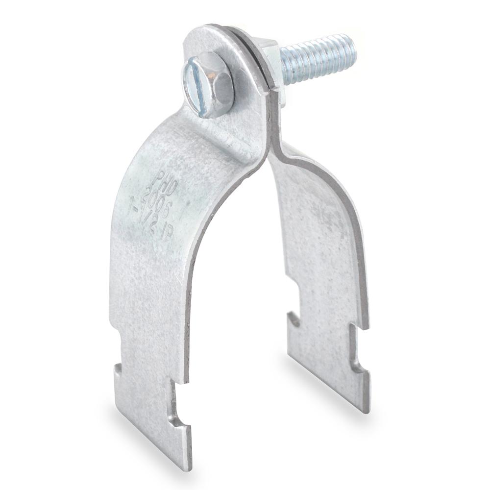 The 2006-112-EG from PHD is a 1-1/2” Galvanized Strut Clamp. It secures 1-1/2" pipe (black, galvanized, Sch 40 PVC) to a standard strut channel for horizontal or vertical support.