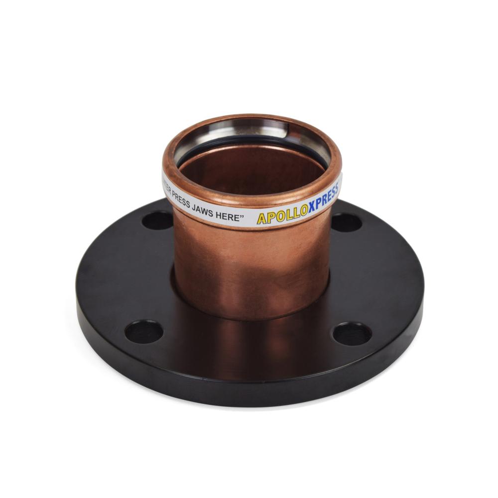 This press flange adapter connects 2-1/2" copper pipe to a flange.