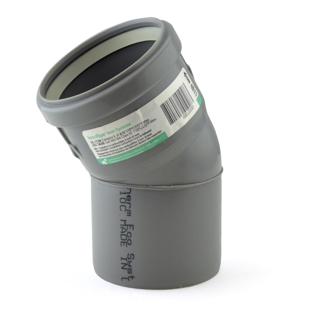 The ISEL0330 from Centrotherm is a 30-degree elbow for 3” Innoflue SW pipes and fittings. It allows to make a 45-degree turn when installing 3" Innoflue SW vent pipe and fittings. UV-rated, can be used indoors and outdoors. Please note that the IANS03 connector ring is required on all 3" Innoflue SW connections and is sold separately. IACE50 Centrocerin lubricant recommended for all gasketed connections.