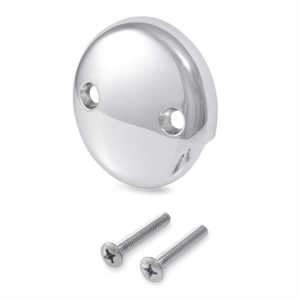 Replacement 2-hole overflow faceplace in chrome plated finish. Includes (2) stainless steel screws.