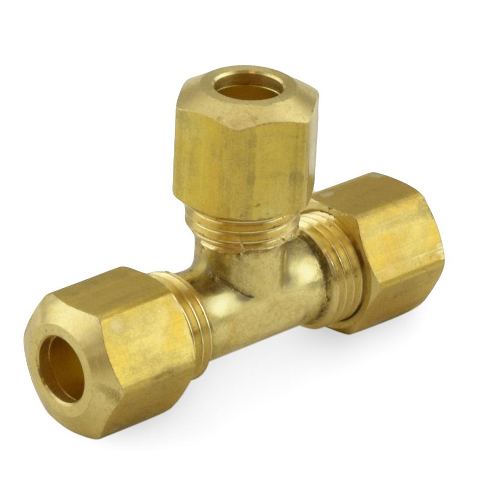 This compression tee fitting connects three equal 1/4" OD pipes (copper or plastic) together. Made from lead-free brass and approved for potable water use.