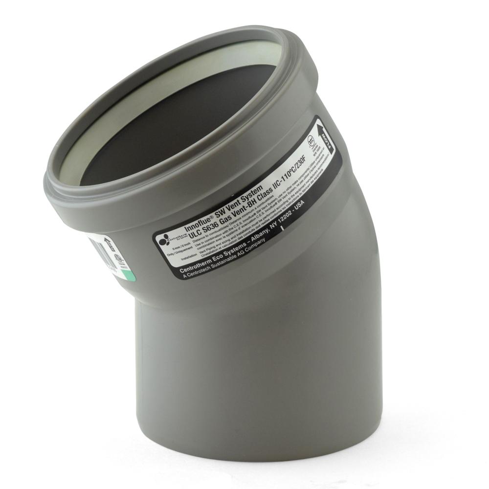 The ISEL0430 from Centrotherm is a 30-degree elbow for 4” Innoflue SW pipes and fittings. It allows to make a 45-degree turn when installing 4" Innoflue SW vent pipe and fittings. UV-rated, can be used indoors and outdoors. Please note that the IANS04 connector ring is required on all 4" Innoflue SW connections and is sold separately. IACE50 Centrocerin lubricant recommended for all gasketed connections.