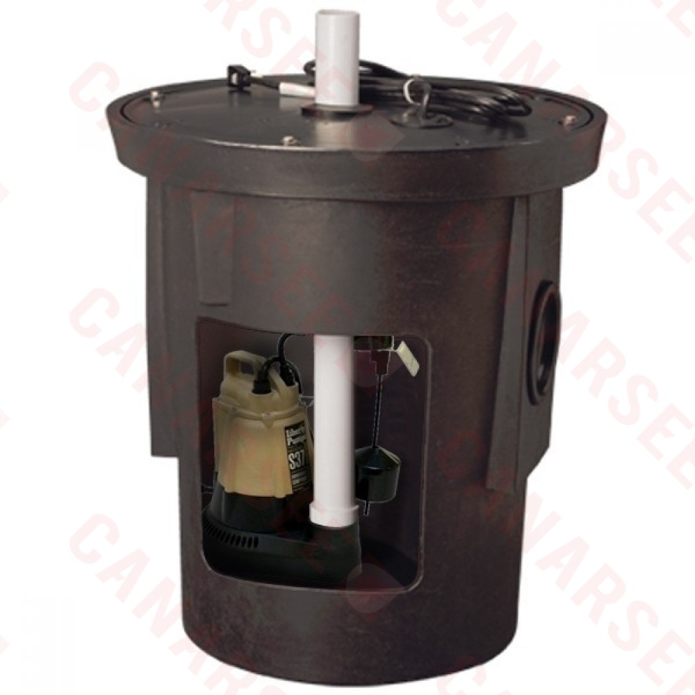 The SPAC-S37 from Liberty Pumps is an Assembled Sump Kit w/ 18” x 22” Basin, 1/3HP Sump Pump w/ 10' cord, 115V. This assembled sump pump kit features an 18" x 22" polyethylene sump pit and cover with gasket and hardware, a pre-assembled 1-1/2" schedule 40 PVC discharge pipe and a molded pump support platform that raises the pump off the bottom of the pit. This Liberty sump pump kit is also equipped with two 4" inlet hubs with rubber grommet seals. The Liberty pump SPAC-S37 can handle solids up to 1/4" and operates at 115V, 5.2 Amp and 60 Hz with maximum fluid temperature of 140F.