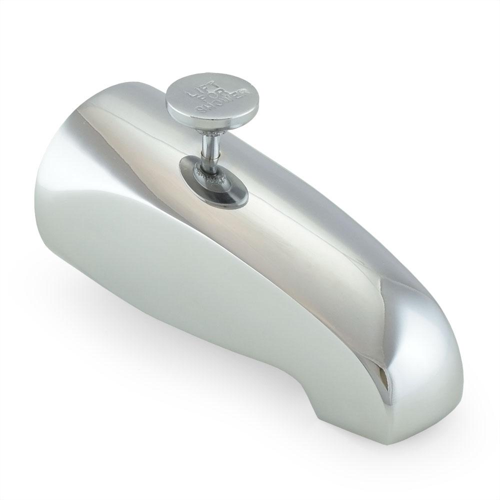 5" long, 1/2" or 3/4" FIP Base Connection Solid Brass Tub Spout w/ Shower Diverter, Chrome Plated