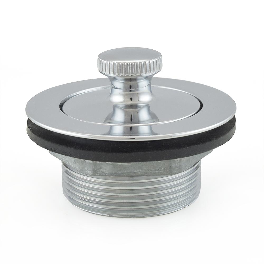 Replacement lift-and-turn (twist-and-close) type universal bath tub drain with chrome plated finish. Includes gasket.