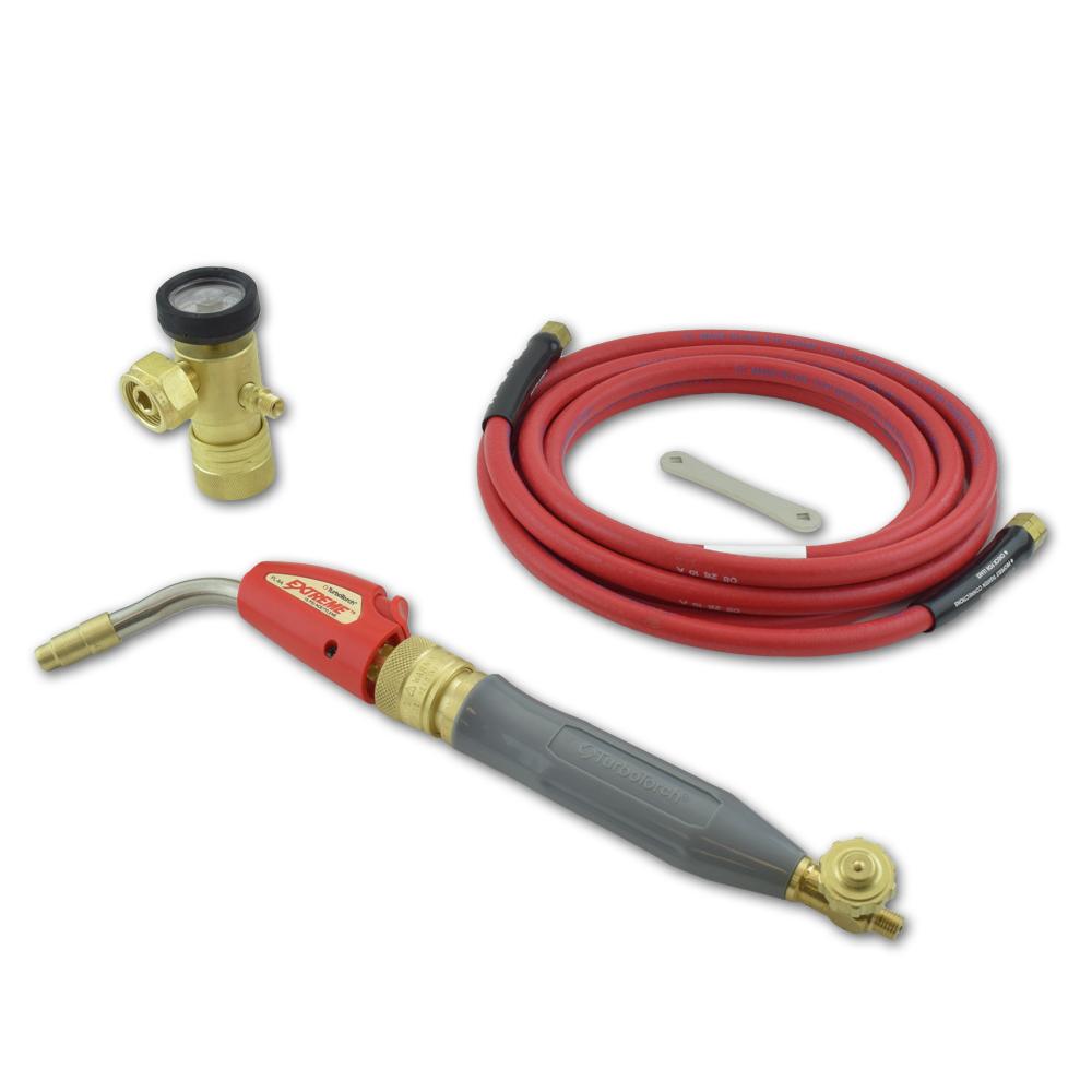 The 0386-0835 from TurboTorch is a PL-8ADLX-B Torch Swirl Kit, Air Acetylene, Self-Lighting. This kit includes: AR-B gas regulator (CGA 520 connection), G-4 quick-disconnect handle, AH-12 hose (12ft), PL-8A self-lighting tip, B-tank key, and instruction manual.