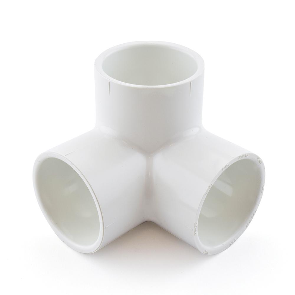 The 413-015 from Spears is a 1-1/2” PVC (Sch. 40) 90° Elbow w/ Side Outlet. It connects three 1-1/2” PVC pipes together at a 90-degree angle relative to each other. Socket (hub) connections on all outlets.