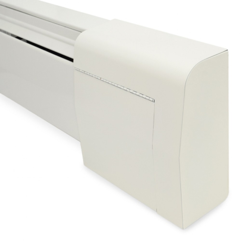 Extra-wide hinged slip-on Right valve cover for Multi/Pak 88 baseboard by Slant/Fin - designed to provide convenient access to an air bleeder valve or a temperature regulating or shut-off valve. Allows to cover medium gaps between the baseboard and adjacent wall. Drawn steel design with rounded edges offers a better look and is safer than welded counterparts. White enamel finish.