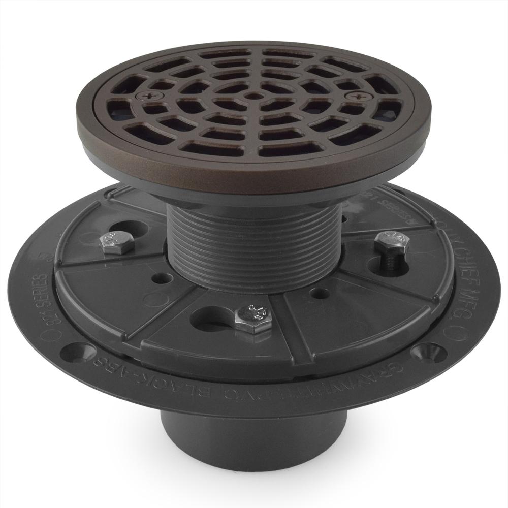 The 821-T200PRBR from Sioux Chief is a Round Tile-in PVC Shower Pan Drain w/ Screw-on Oil Rubbed Bronze Strainer & Ring, 2” Hub x 3” Inside fit.