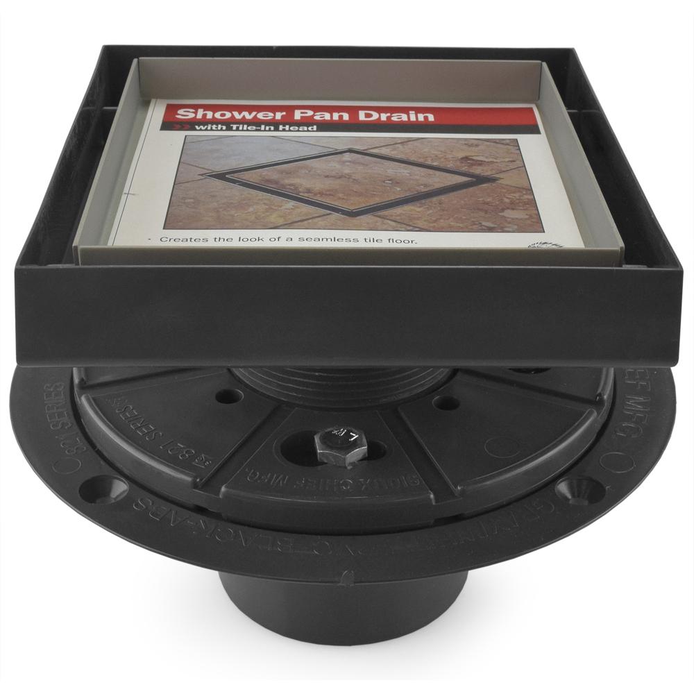 The 821-T2PT5A from Sioux Chief is a Square Tile-in PVC Shower Pan Drain w/ 5” x 5” Stainless Steel Tile Insert grate, 2” Hub.