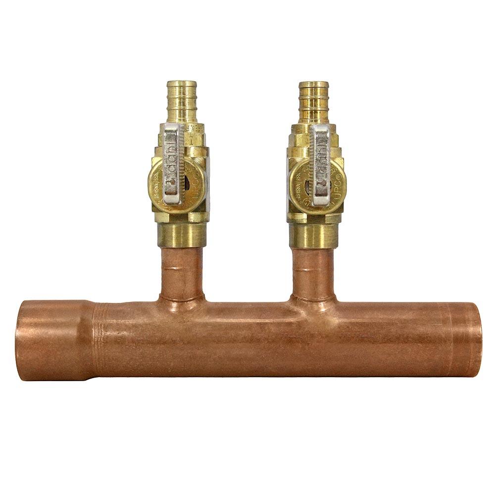 Sioux Chief 672XV0242 2-Branch Manifold, 1" Female Sweat x 1/2" PEX Valves x Male Sweat