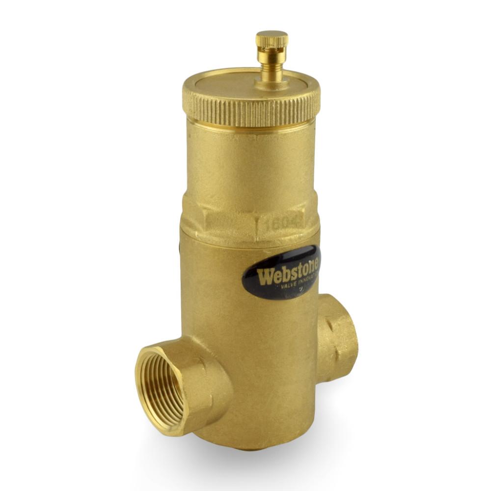 The 74004 from Webstone is a 1” Threaded Air Separator. This item is designed to eliminate trapped air associated with start-up and maintenance of any hydronic system.