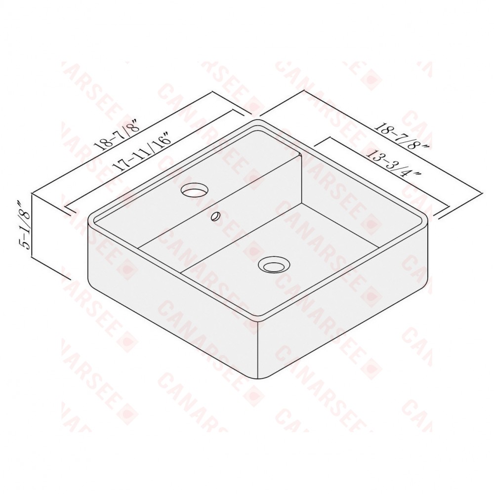 Exterior dimensions: 18.63 long x 18.63 wide x 5.13 inches high